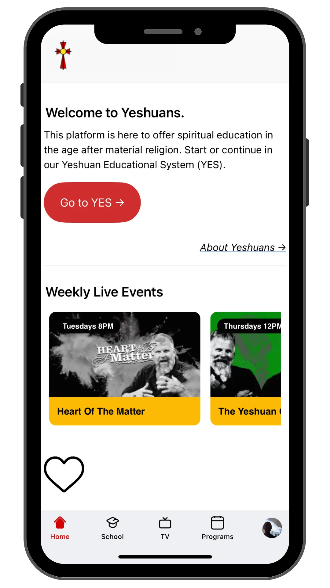 Yeshuans is available as a free web and mobile app, featuring School, TV, Programs and Discussion for any and all individuals seeking direct relationship with Yeshua from any institutional circumstance. Whoever you are, you are welcome!